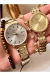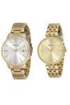 Ferrucci Altın Renk Çelik Kordon Şık Sevgili Çift Kol Saati+Bileklik
