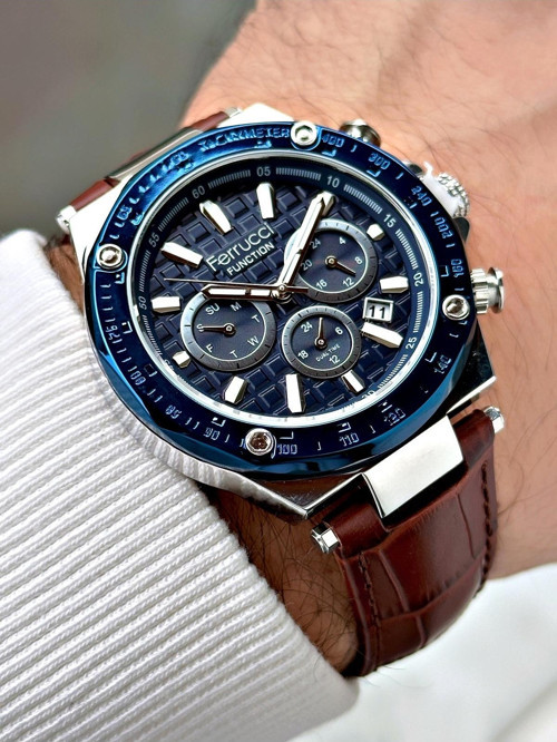 Fonksiyonları Aktif Kahverengi Renk 3 Atm Su Geçirmez Deri Kordon Erkek Kol Saati