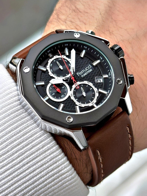 Function Fonksiyonlu Kahverengi Renk 3 Atm Su Geçirmez Deri Kordon Erkek Kol Saati