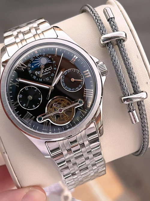 Ferrucci Otomatik&Kurmalı 30 Atm Suya Dayanıklı Deri Kordonlu Erkek Kol Saati
