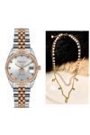 Ferrucci Zirkon Taşlı Takvimli Kadın Kol Saati+%100 Çelik Kolye Hediyeli
