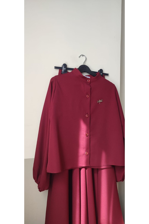 Fersaf Design tarafından sunulan bu şık ikili takım, zarif bordo rengiyle dikkat çeker.