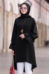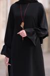 Ka Hijab Kolları Fiyonk Detay Bağlamalı Üçlü Takım - Siyah