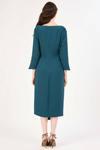 ÜRÜN BİLGİSİ:Dökümlü kumaş,yuvarlak yakalı,drape detaylı,fermuarlı,süs düğmeli,asimetrik etekli astarlı elbise.