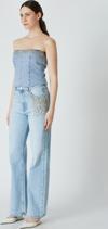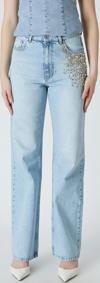 Detay: Yıkamalı denim kumaş,normal bel,cepli,metal düğmeli,taş işlemeli detaylı,düz paça jean pantolon;