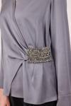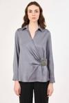 ÜRÜN BİLGİSİ:Dökümlü parlak yüzeylikumaş,yakalı,işleme detaylı,şık bluz.