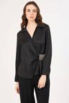 ÜRÜN BİLGİSİ:Dökümlü parlak yüzeylikumaş,yakalı,işleme detaylı,şık bluz.