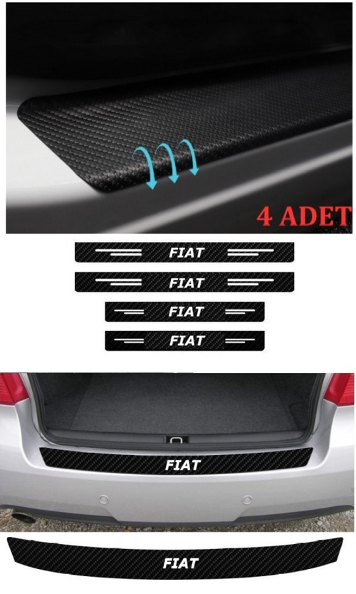 Kumraldede Fiat Fiorino İçin Uyumlu Aksesuar Oto Bağaj Ve Kapı Eşiği Sticker Set Karbon