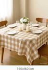 Fiber Kareli Masa Örtüsü Sofra Bezi Ekose Desen 160x160 Cm Bej