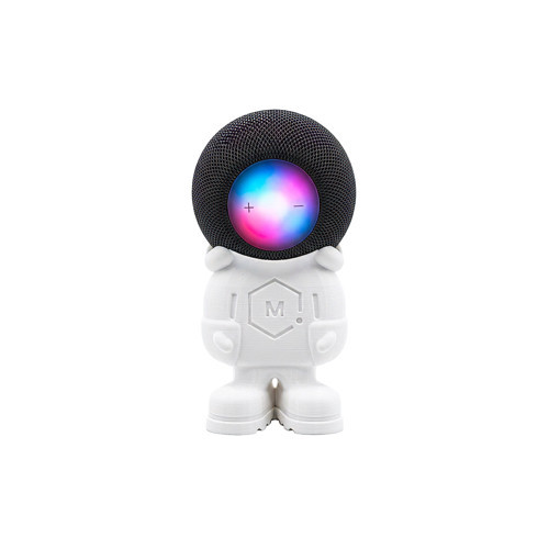 Kusursuz Entegrasyon. HomePod Mini’nin renkli ve hareketli dokunmatik yüzeyi, astronot figürünün kask vizörüyle birebir uyum sağlayarak büyüleyici bir ışık oyununa dönüşür. Mat yüzeyli özel gövdesi, Apple estetiğine sadık kalarak ışığı yansıtmaz, sadece şıklığı vurgular.