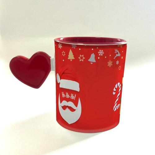 Figiplus 2024 Noel Baba Tam Tur Baskılı Dolu Kalp Kulplu İçi Kırmızı Yılbaşı Kupası