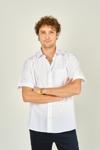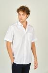 Erkek Kısa Kollu Tek Cep Detaylı Pamuklu Gömlek 1000 Beyaz