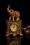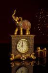 Kesene Fil Figürlü Zarif Masa Saati Bolluk Şans Simgesi Kırmızı Taş Detay Altın Renkli Fil Masa Saati 19 Cm