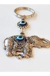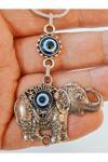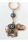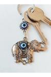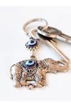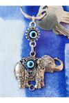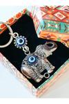 Fil Şekilli Üzeri Cam Göz Süslemeli İnce İşlemeli Metal Anahtarlık – Zarafeti ve Koruyucu Enerjiyi Taşıyın