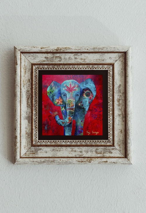 Fil Tasarımlı Çerçeveli Taş Tablo , Çerçeveli Taş Duvar Dekoru