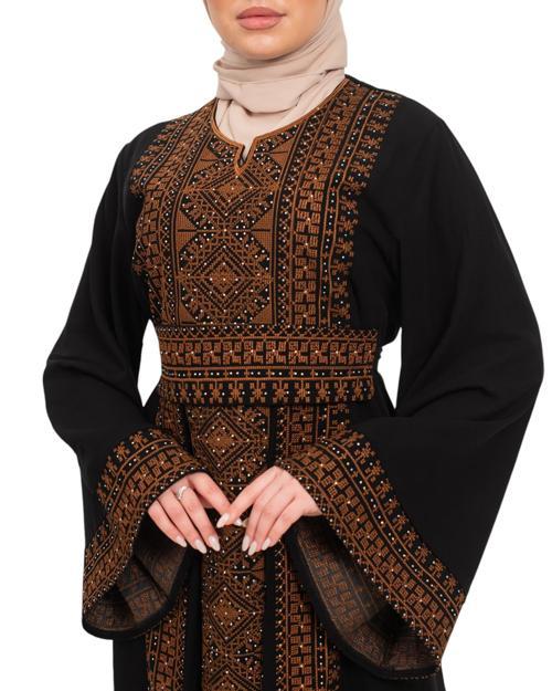 This beautiful traditional Palestinian dress features heart-shaped embroidery, symbolizing love for Palestine. Crafted with intricate detailing, the design highlights the cultural heritage of Palestine, making it a perfect choice for special occasions or cultural celebrations. Celebrate tradition and craftsmanship with this stunning piece.