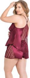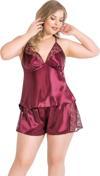 Findit Büyük Beden Bordo Saten Babydoll Şort Takımı 1059