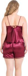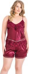 Findit Büyük Beden Bordo Saten Babydoll Şort Takımı 1053