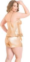 Findit Büyük Beden Gold Saten Babydoll Şort Takımı 1054
