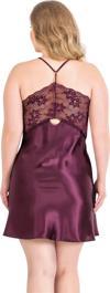 Findit Büyük Beden Mürdüm Kısa Saten Gecelik 2051