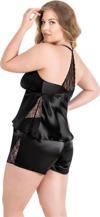 Findit Büyük Beden Siyah Saten Babydoll Şort Takımı 1065