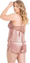 Findit Büyük Beden Vizon Saten Babydoll Şort Takımı 1064