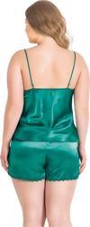 Findit Büyük Beden Zümrüt Saten Babydoll Şort Takımı 1057
