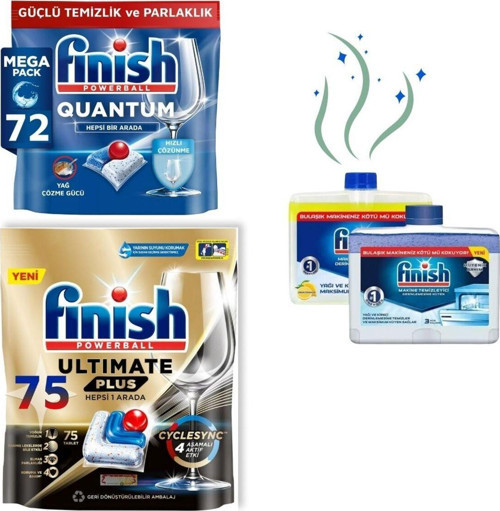 Finish Mega Avantaj Paket Bulaşık Makinesi Temizleyici (2 Adet) - Ultimate Plus 75 - Quantum 72 Tablet