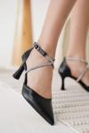 Fiona Taşlı Kadın Siyah Topuklu Ayakkabı