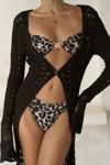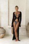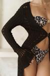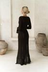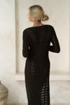 V yaka, uzun kollu hırka. Fırfır kol detaylı. Önden düğmeli. Ajurlu triko.