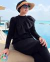 Akbeniz Kadın Pantolonlu Desenli Tam Tesettür Mayo Siyah 31075 - Image 1
