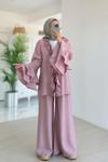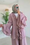 Ka Hijab Fırfır Detaylı Volan Kollu Takım - Pembe