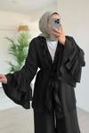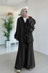 Ka Hijab Fırfır Detaylı Volan Kollu Takım - Siyah