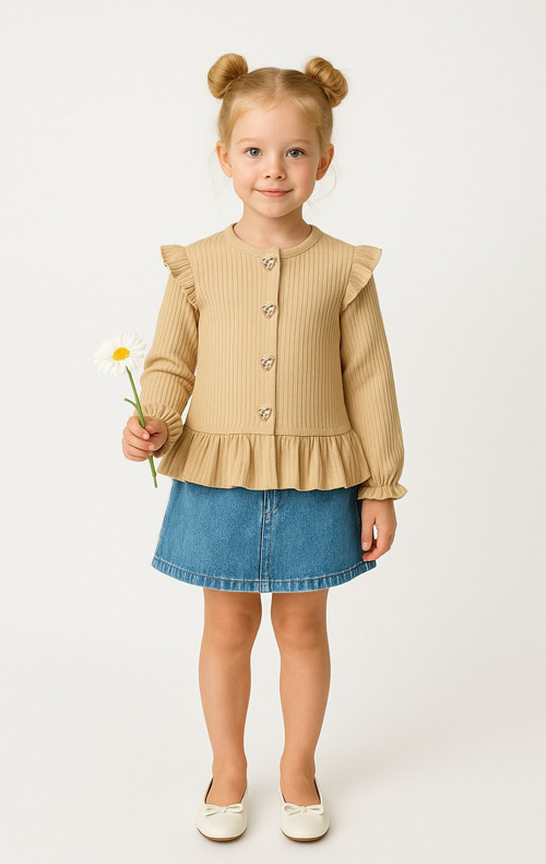 Fırfırlı Fitilli Kumaş Kız Çocuk Uzun Kollu Hırka