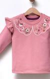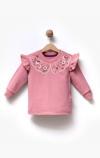 Fırfırlı Yakası Çiçek Nakışlı 2 İplik Uzun Kol Kız Çocuk Sweatshirt