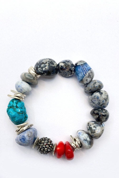 Doğal taş kullanımı sayesinde her bileklik benzersiz ve otantik bir görünüm sunar; Firuze, mercan ve kalsit gibi doğal taşların birleşimiyle zenginleştirilmiş tasarım, şıklığınızı tamamlar; Doğal taş materyali ile hem dayanıklılık hem de estetik bir dokunuş sağlar;