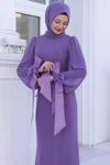Puantiye Desenli Rüya Tesettür Abiye Mürdüm - Image 1