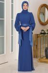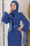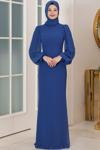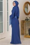 Esilanur Bersu Önü Pul Boncuk İşlemeli Tesettür Abiye Lacivert