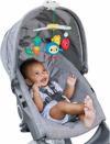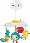 Yenidoğanlar, çiçek yapraklarında asılı olan dört oyuncağı izleyebilir. Takılıp çıkarılabilen çiçek yaprakları döndürülerek ve kolayca katlanarak düz hale getirilebilir. Dönencede, içinde bir çan olan Happy World karakteri Kucak Sever Böcek, çıngırak sesleri çıkaran yumuşak bir elma, hışırtılı bir yaprak ve iç kısmında ayna olan sevimli bir çiçek bulunur.