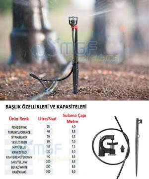 Mgf Plast Agro Drip 70lt Siyah (6,5mt Çap) Kazıklı Mini Sprink Yağmurlama Fiskiye Sulama Takımı X 5 Adet