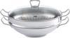 Cam kapaklı ve buharlı pişirme aparatlı Nanjing paslanmaz çelik wok, Asya mutfağınızın en iyi pişirme keyfi için idealdir.