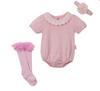 FİSTO YAKA KISA KOL ÇITÇITLI BODY BANT ÇORAP SET Pembe