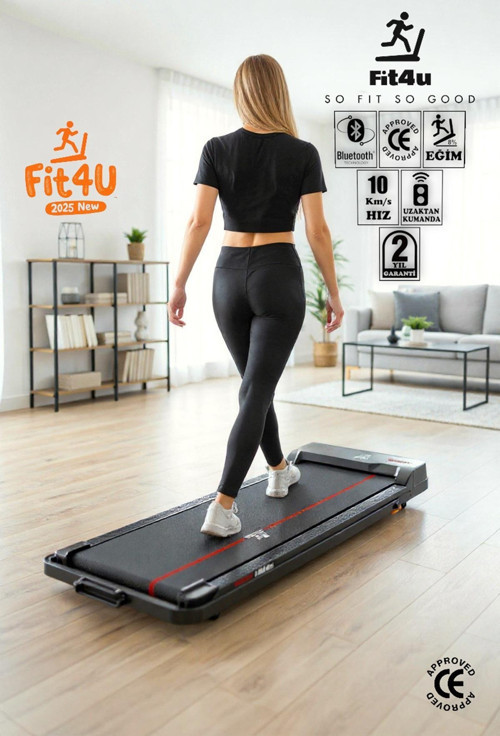 FIT4U CE Belgeli, Bluetooth Uygulama Eğim Ayarlı Uzaktan Kumandalı 10km Hız Katlanabilir Koşu Bandı