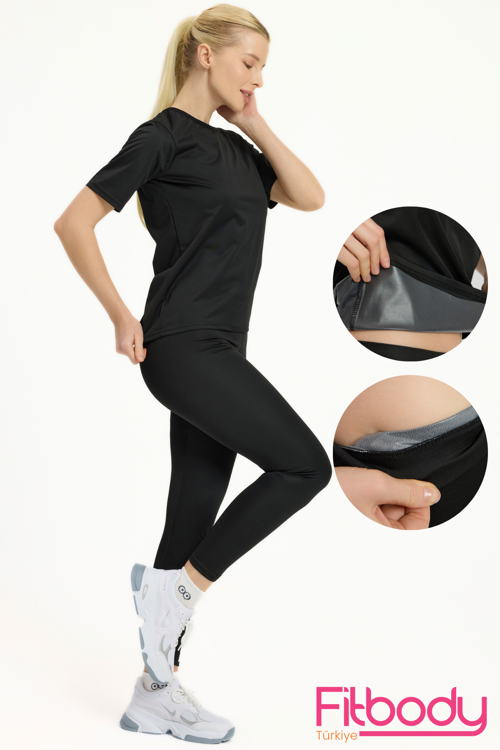 FitBody Yağ Yaktıran Termal Kısa Kollu Tişört ve Tayt Seti, termal kumaş teknolojisi, vücudu saran toparlayıcı yapısı ve hareket özgürlüğü sunan esnek formu ile spor ve günlük aktivitelerde etkili bir destek sunar.