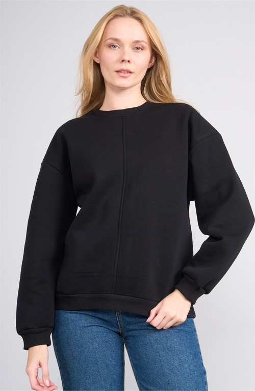 Çetinkaya Fithit 8514 Kadın Bisiklet Yaka 3 İplik Loose Fit Sweatshirt Siyah