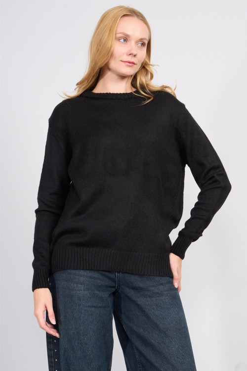 Çetinkaya Fithit 8631 Kadın Bisiklet Yaka Akrilik Triko Kazak Siyah