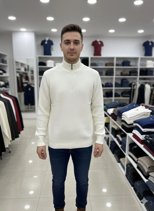 BİGÜMEX Fitilli Fermuarlı Triko Kazak, şıklığı ve rahatlığı bir arada sunuyor.