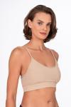Hem konfor hem destek sunan Kadın Fitilli Kumaş İnce Askılı Şekillendirici Spor Sütyeni, günlük kullanım ve hafif egzersizler için ideal bir seçimdir.