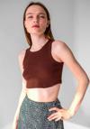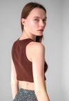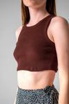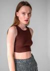 Basic koleksiyonunun sade ve şık bir parçası olarak, düz desenli koyu lacivert fitilli süper crop halter yaka örme atlet, günlük kullanım için idealdir