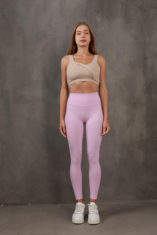 Polyester karışımlı kumaşı sayesinde uzun süreli kullanımda bile formunu koruyan ve esneklik sunan fitilli yüksek bel tayt.